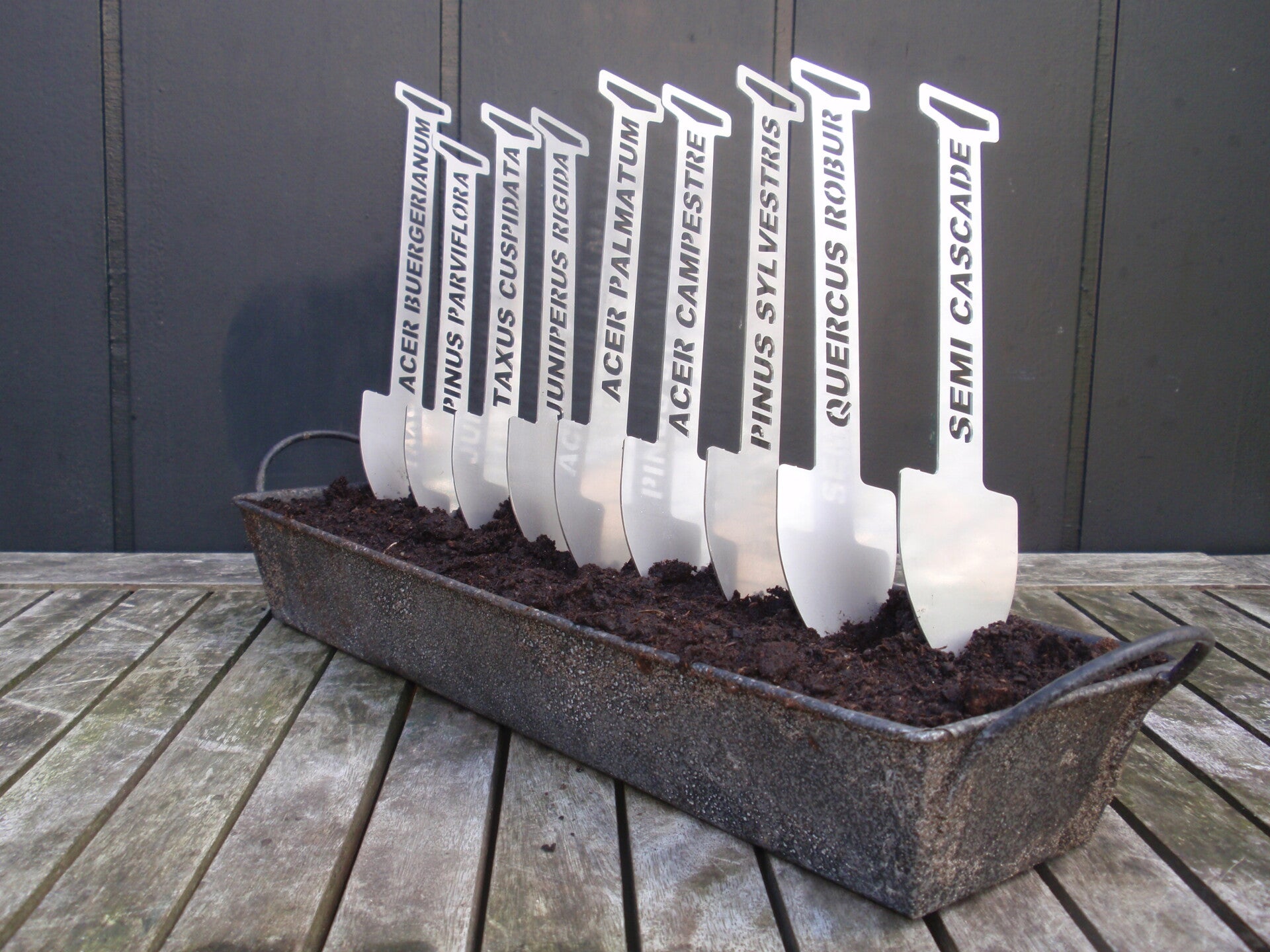 De RVS plantenstekers van Mijnschepje.nl zijn zowel functioneel als decoratief. Maak je Bonsai op originele wijze herkenbaar door middel van deze plantensteker in de vorm van metalen schepje.